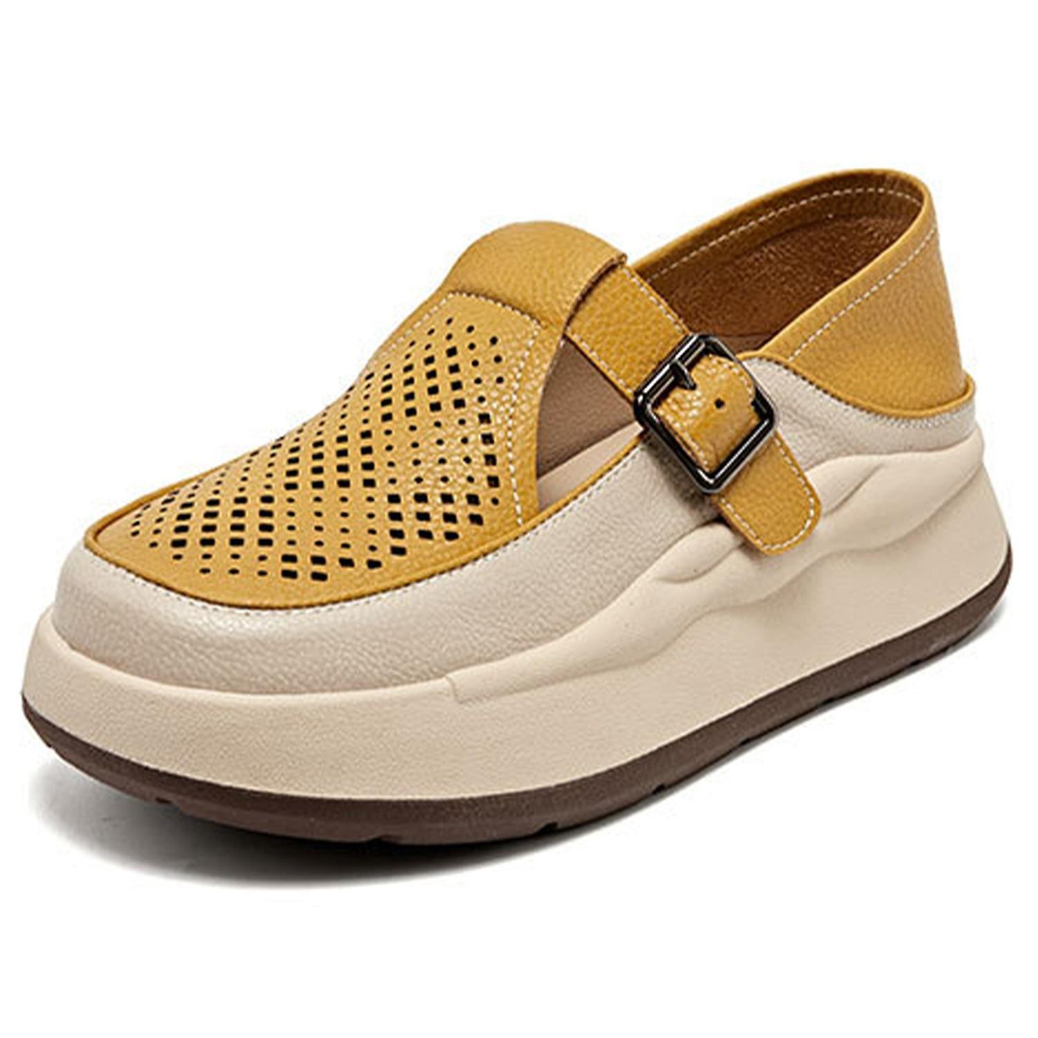 Women's Genuine Leather Hollow Platform Sneakers Casual Breathable Adjustable Buckle Wedge Loafers S
