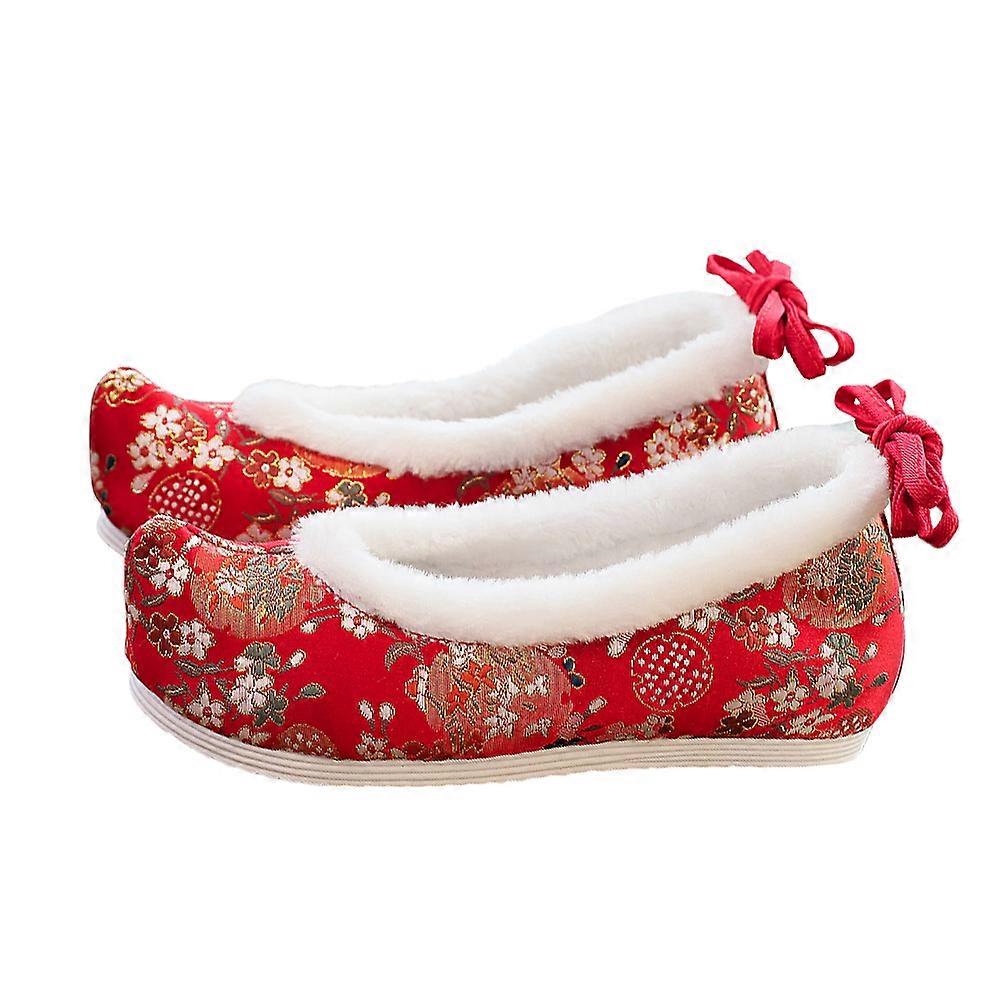 Chinese Style Embroidered Flat Shoes with Hidden Wedge Heel, Floral Patterned Comfort Walking Footwear for Hanfu and Special Occasions
