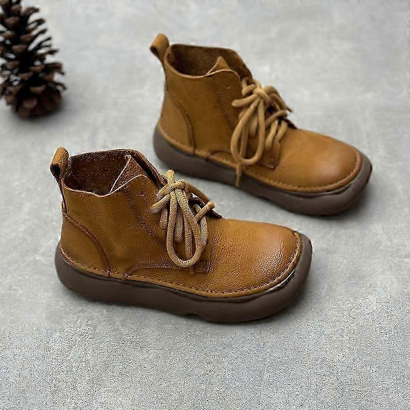 Women's Retro Lace-Up Boots Wide Toe Soft Sole Cowhide Leather Short Footwear
