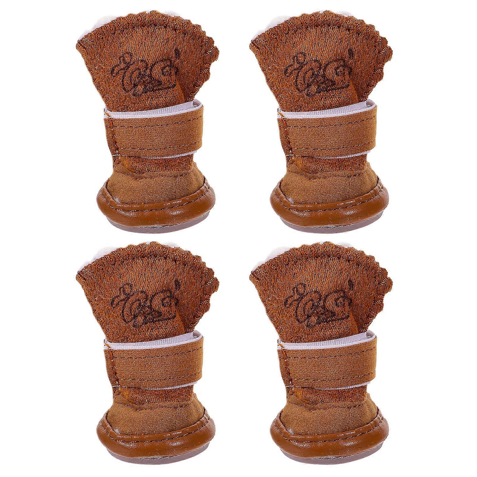 Protective Boots Dogs Paws Winter Pet Dog Puppy Casual Anti Slip Fleece Snow Boots Warm Dog Shoes Size 4Pcs