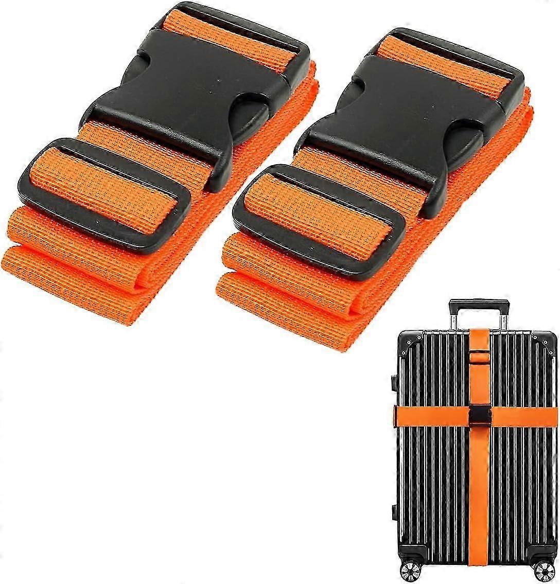 Luggage Straps Suitcase Belts Heavy duty Adjustable Travel Bag Strap Bright Colours Belt with Quick Release Buckle (2 Pack, Orange)