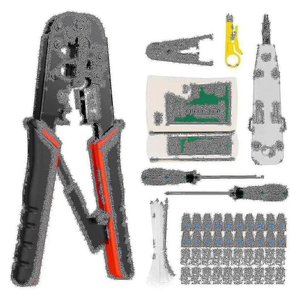 Crimping Tool Portable Rj-11, 6p/rj-12, 8p/rj-45 Ethernet Crimping Tool Kit,20 Connectors,20 Caps,1