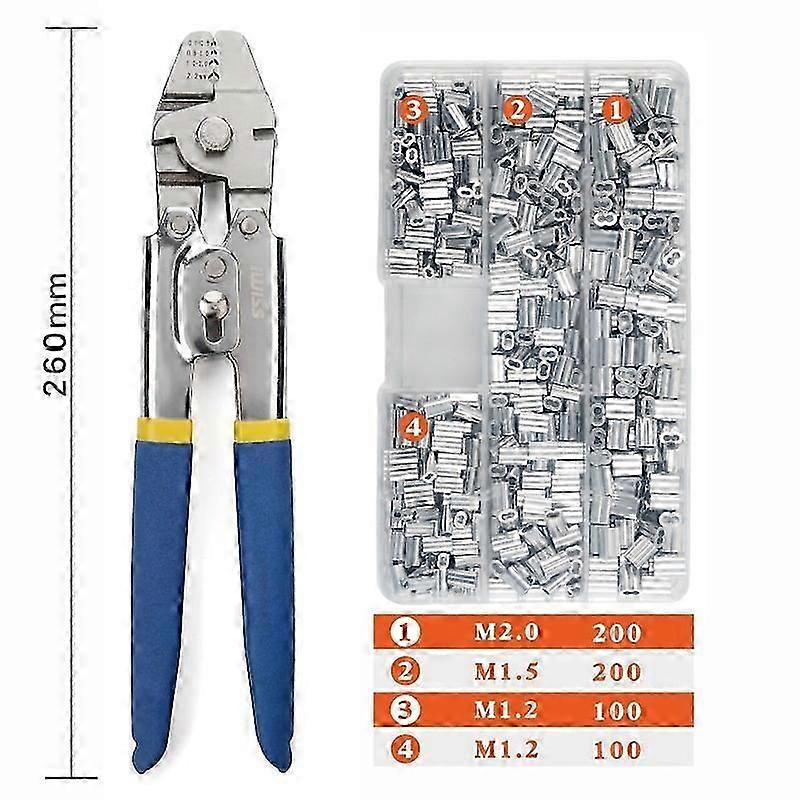 Wire Rope Crimping Tool up to 2.2mm with 600 Aluminum Double Barrel Crimp Sleeves in 3 Sizes
