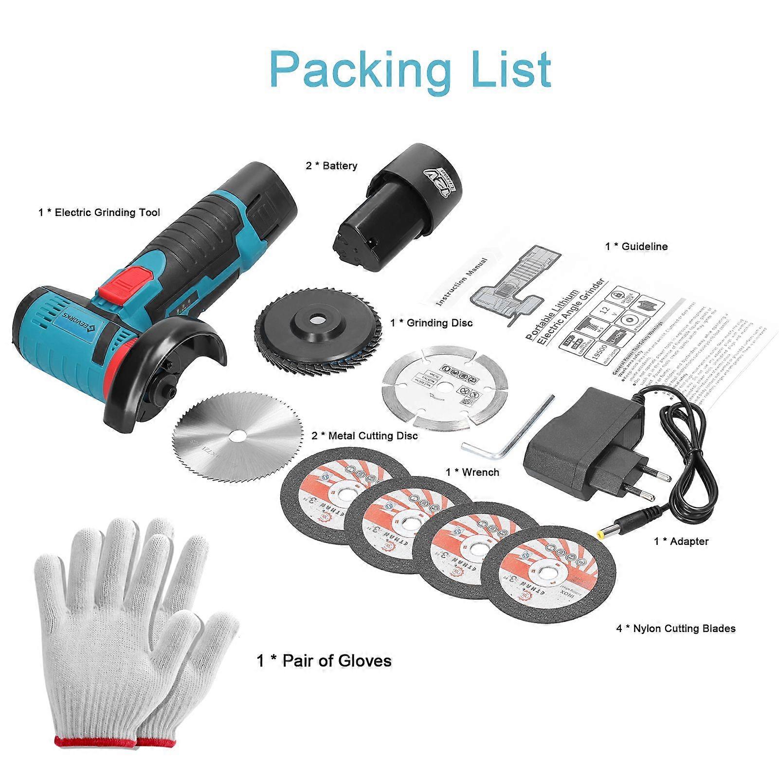 12 V 19500rpm Electric Grinding Tool Multifunctional Angle Grinder Handheld Cutter for Cutting Polishing Ceramic Tile Wood Stone Steel