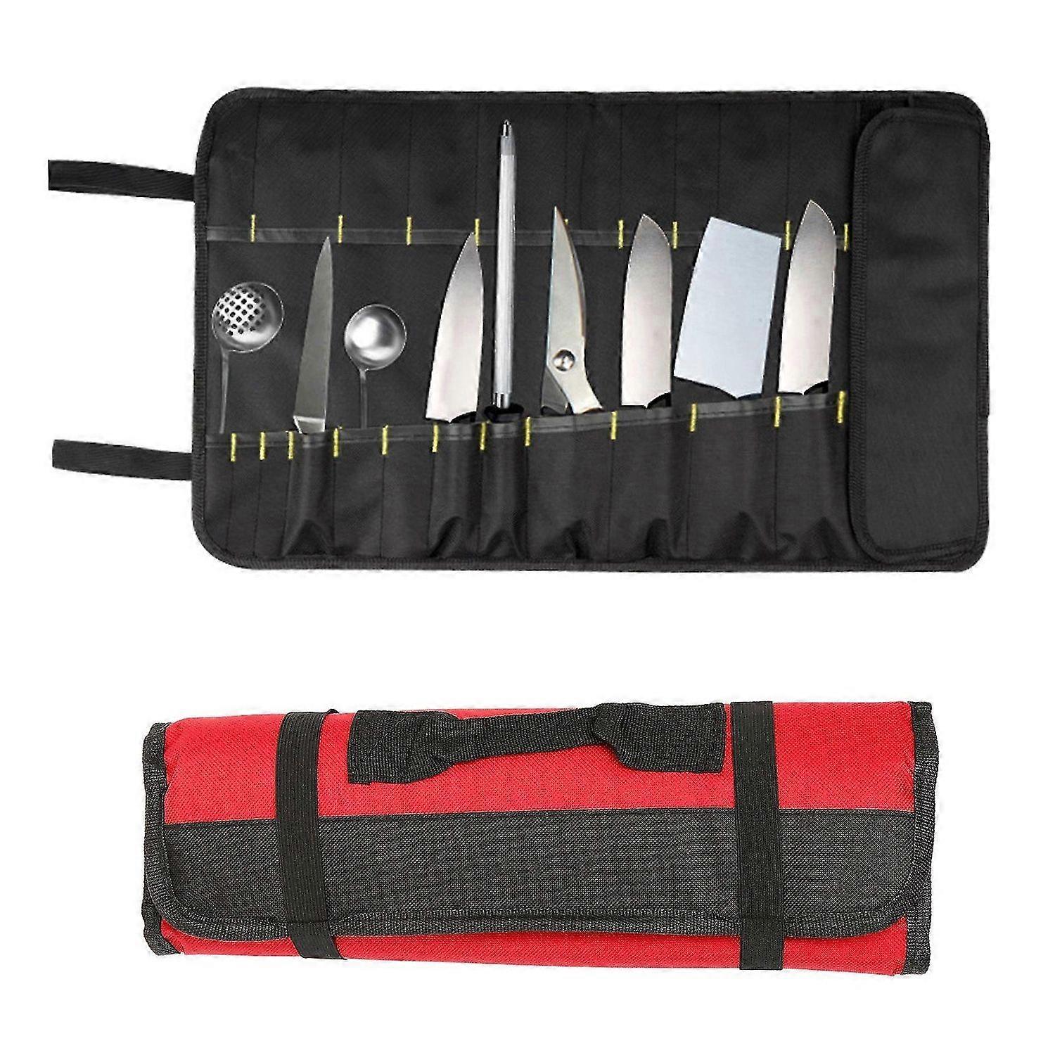 Tool Roll Bag Portable Canvas Waterproof Multifunctional Tool Organization Roll Bag for Woodworking Red
