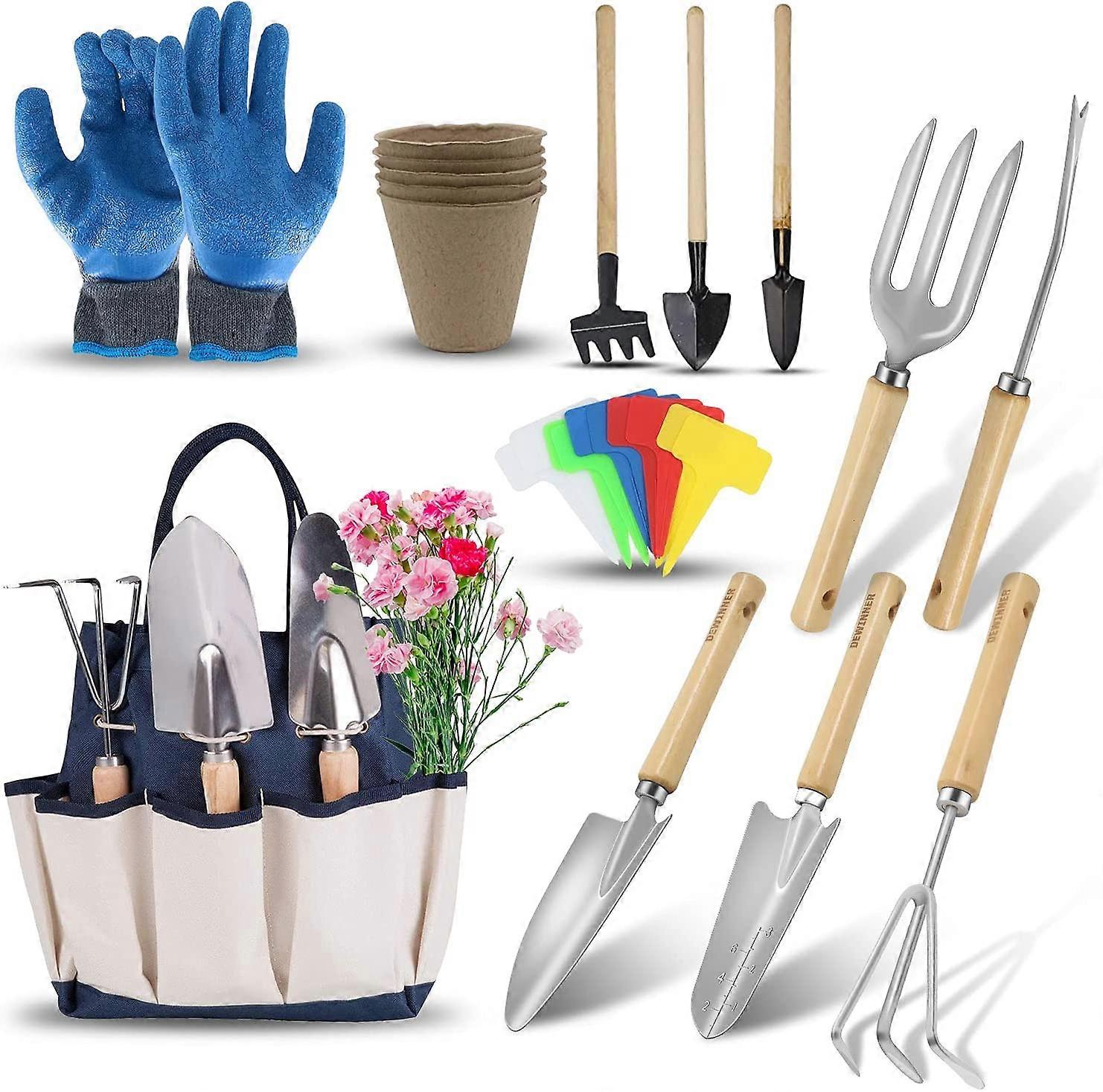 Gardening Tools, Hand Set Garden Tools for Plants, 23 PCs Kit with Storage Bag, Stainless Steel, Gift for Women Men