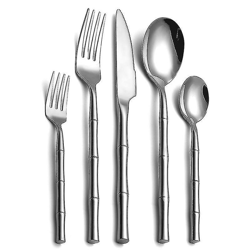 Stainless Steel Cutlery, Creative Cylindrical Bamboo Handle, 304 Thick Cutlery (5-piece Set)-P