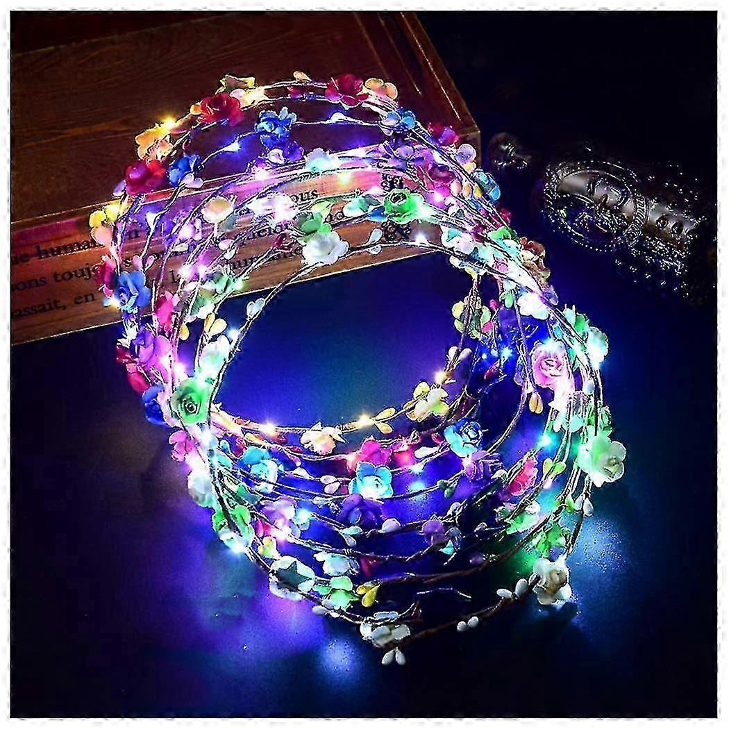 Led Flower Headband,7pcs Flower Crown Garland Headband Flower Headdress Floral Headband For Women Girls Hair