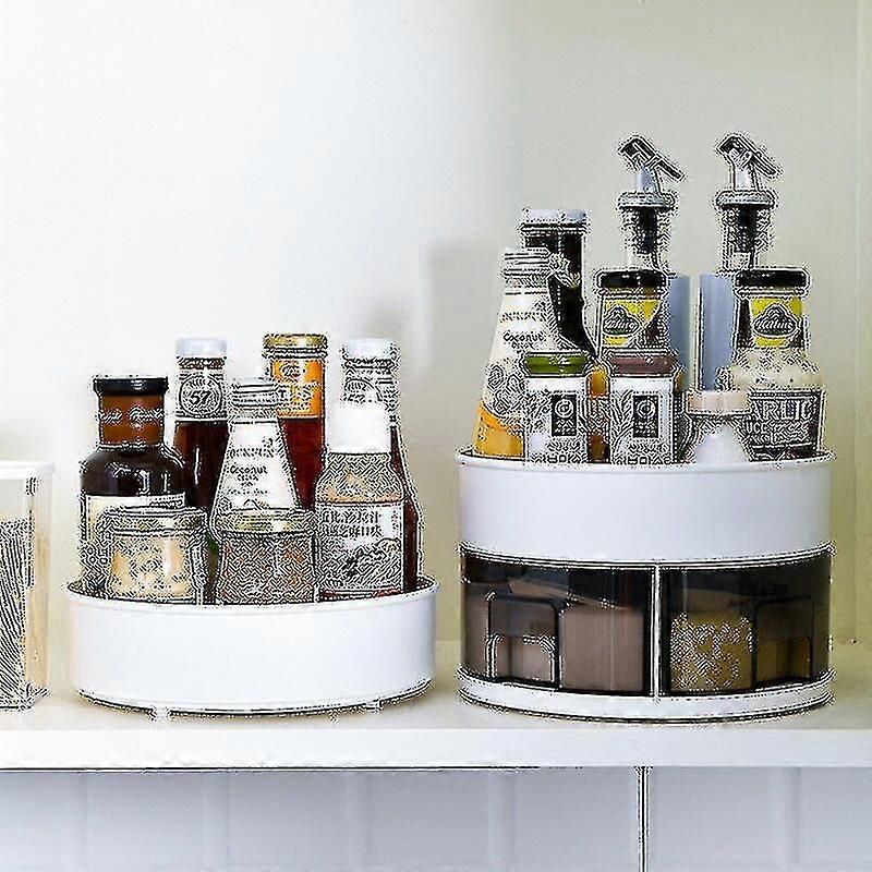 Four Grid Seasoning Box Double Layer Kitchen Spice Organizer Rack 360 Degree Rotating Storage She
