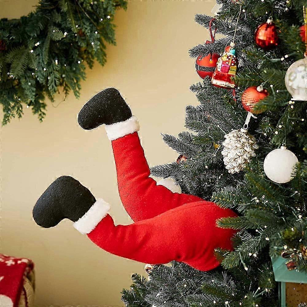 Christmas Santa Legs,Plush Stuffed Feet with Shoes, Stuck in Christmas Tree Decor Decorative Stuffed Santa Legs Ornament for Christmas Tree