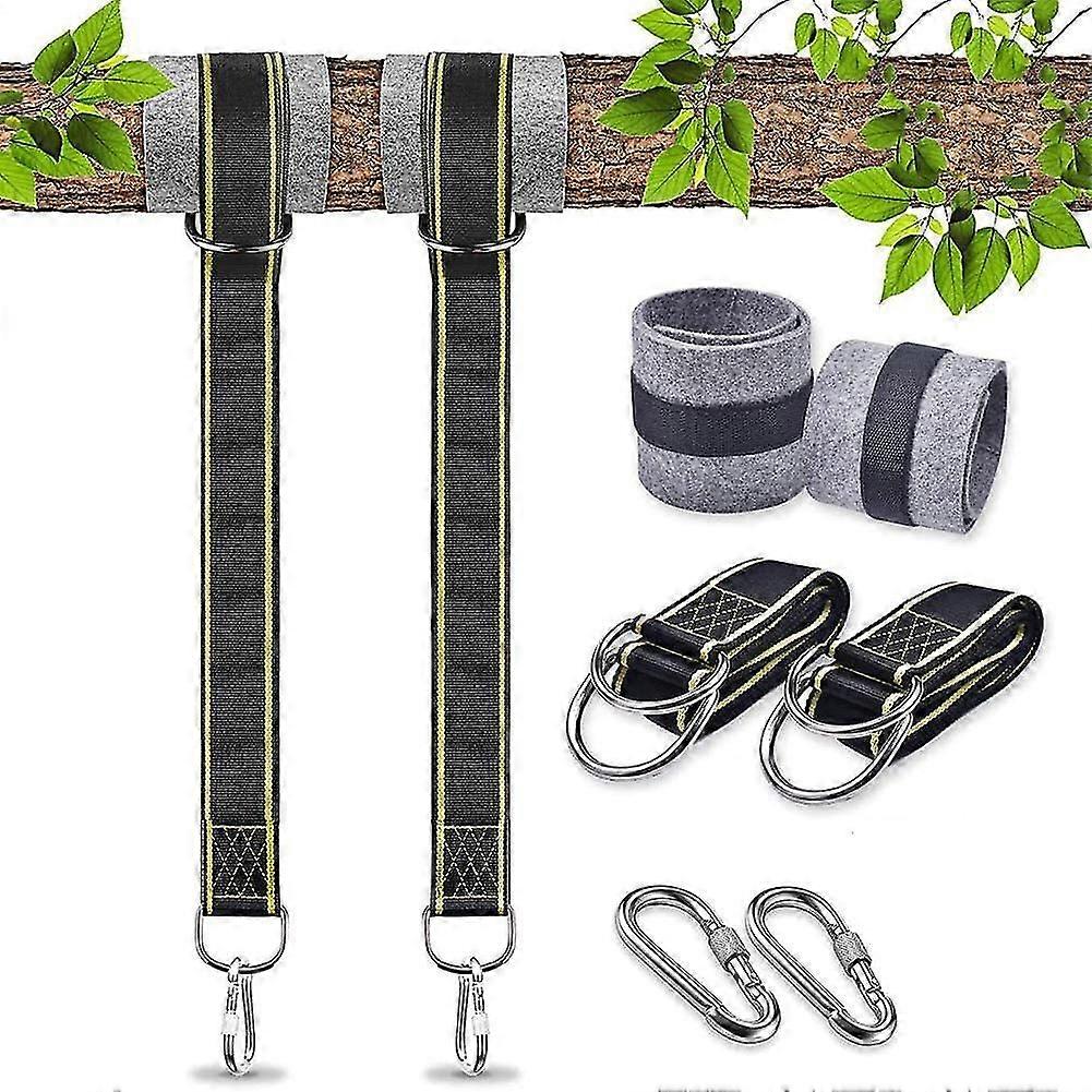 Swing Me Round Few things take you back to the balmy days of childhood summers like a swing Now you can quickly, easily, and safely bring all that fun to your backyard with this swing hanger kitDesigned with Safety No matter whos in the swingers seat, the Safety should always be the top priority. Weve applied thicker, more durable, non-slip nylon with new and improved stitching to create the most durable and secure swing straps on the market. Our tree swing kit can hold up to 2200 lbs. All we want is to help you have fun times with our first-class safetyAdditional Tree Protection Pads & D-Ring The sturdy D-ring and the steel carabiner with screw lock are the protection of your safety. Swing straps can break due to continuous rubbing without a tree guard. We upgraded 2 tree protection pads to prevent sudden breakage caused by long time friction.With our swing stand, you cant worry when swingingSuitable for All swings Our tree swing hanging kit is suitable for all types of swings, hammock swings, patio swings, porch swings, tree swings, garden swings, hanging chairs, nest swings, baby carrier swings, etc.Easy to Use Both straps can be installed in less than 5 minutes. No drilling or tools required. It comes with a handy carry bag so you can take your suspenders with you anywhere. Lightweight and portable for days at the park, camping or hiking