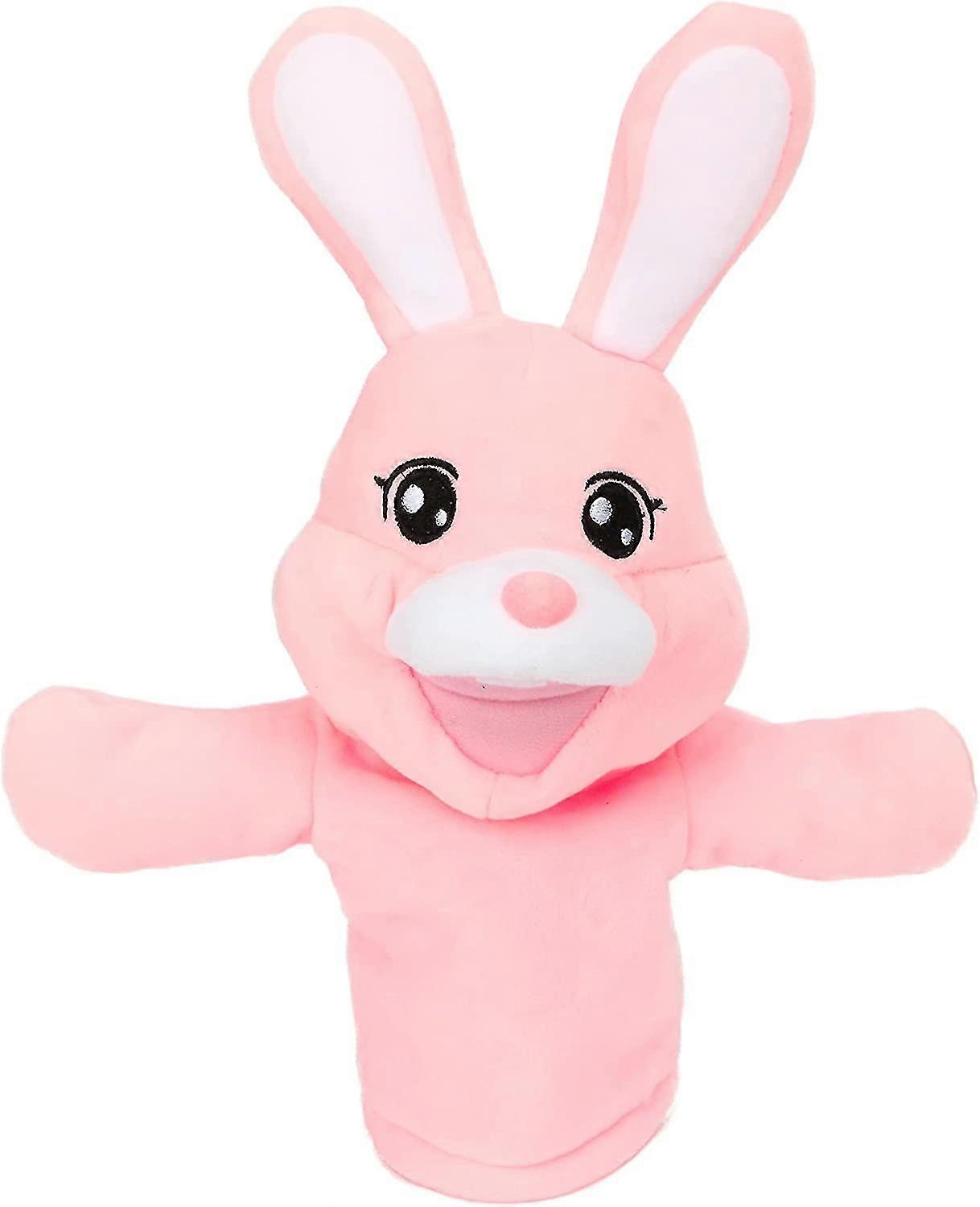 Rabbit Animal Hand Puppet Toy With Movable Mouth For Role Play Storytelling Preschool Education Kids Birthday Gift Boy Girl Pink 15 Inch