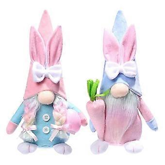 Easter Gnome Bunny - 2Pcs Handmade Swedish Tomte Plush Rabbits with Easter Egg and Carrot, Suitable As Easter Decoration