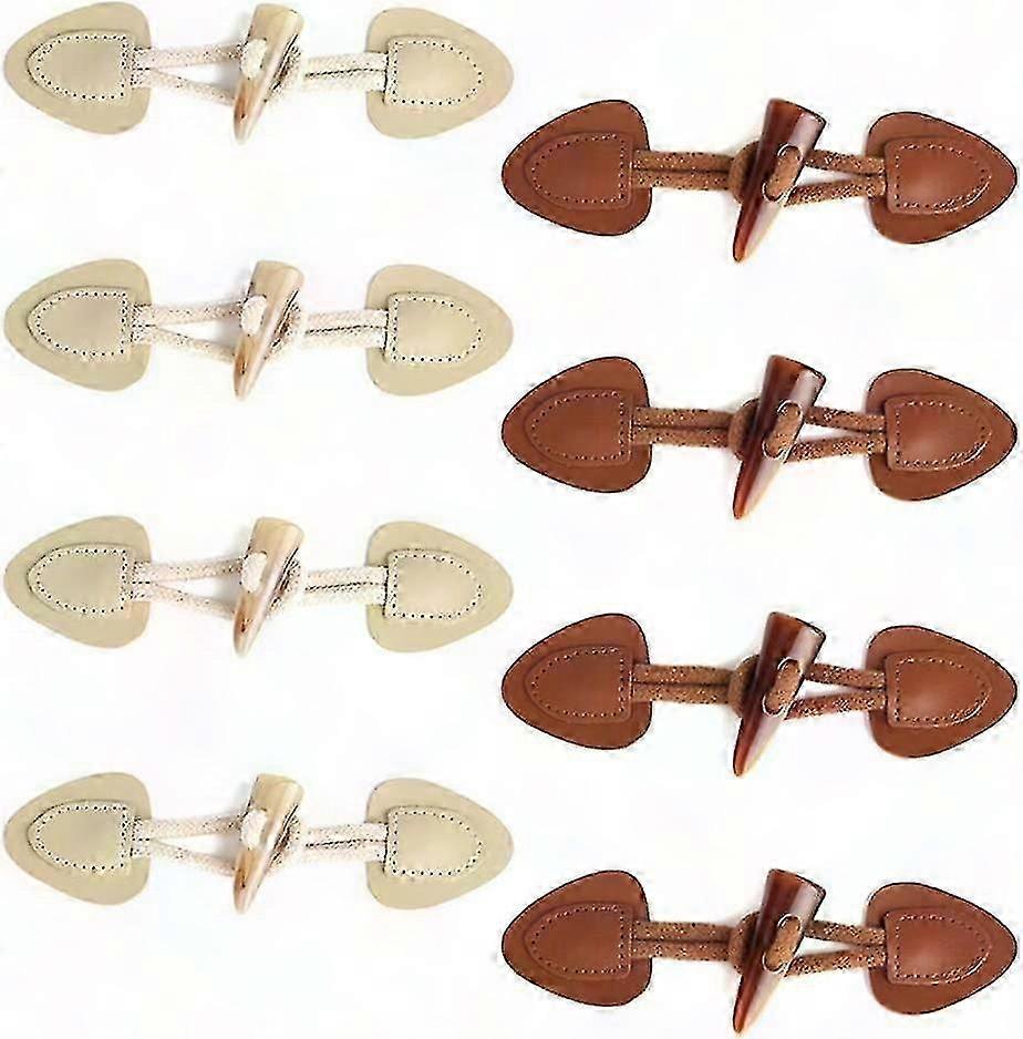 Leather Horn Toggle Buttons 8 Pairs Horn Fastener Buttons Pu Leather Sewing Buttons Toggle Fastener For Diy Clothing Sewing Accessories(beige And Brow