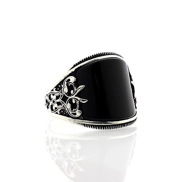 Fashion Retro Sterling Carved Pattern Ring Black Ring