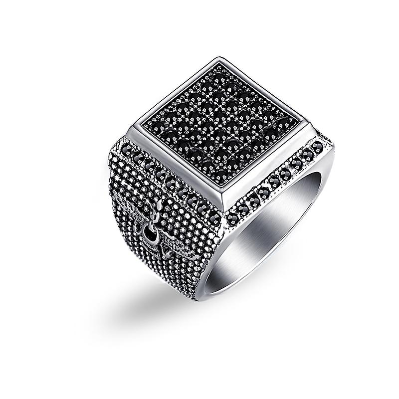 Fashion Retro Big Ring Front Square For Men Inlaid Black Stone Crystal Eagle Pattern Ring Accessories Party Jewelry Size8-12