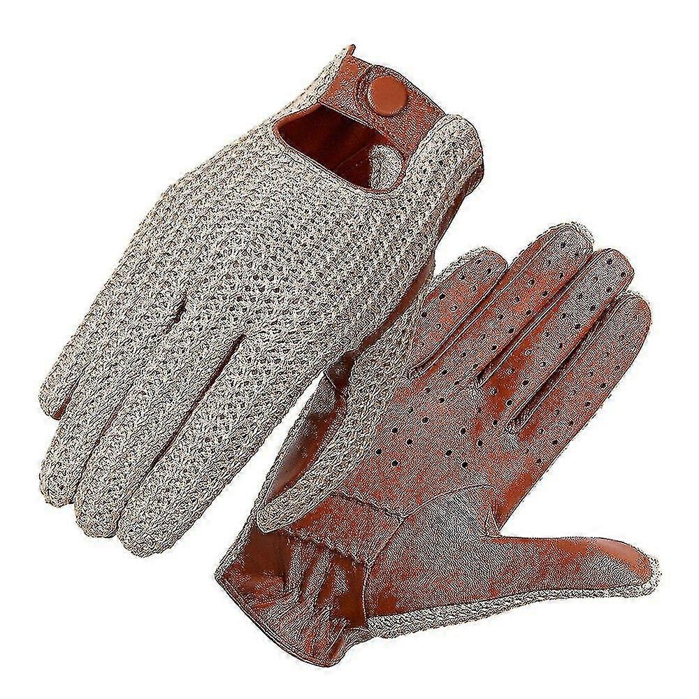 Fashion Driving Gloves Genuine Sheepskin Leather Glove Men Keep Warm Knitting Mittens#beige