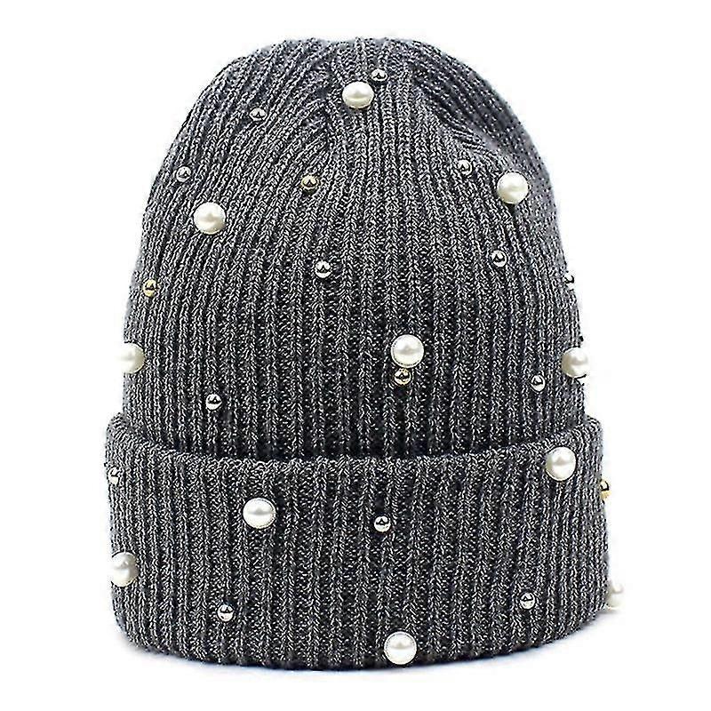 Fashion Pompom Knitted Wool Hat With Pearls Beads Caps For Women Beanie Winter