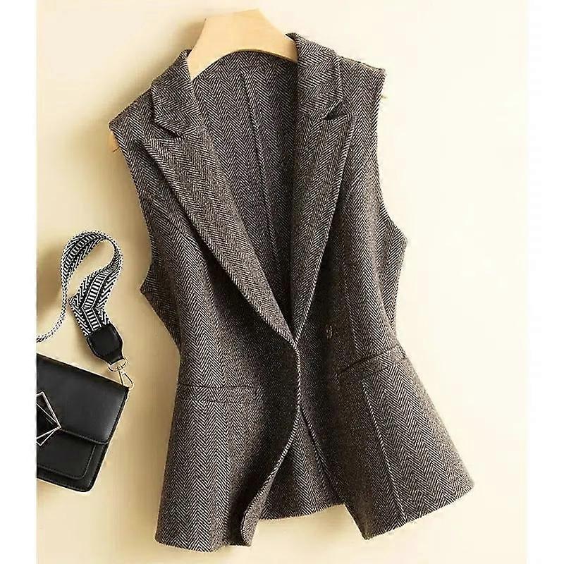 New Fashion Woolen Vest Coat Women 2023 Spring Autumn Short Sleeveless Jacket Casual Ladies Wool Waistcoat Female Outerwear