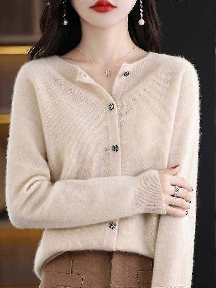 New Fashion 2024 Women's 100% Merino Wool O-Neck Cardigan Cashmere Sweater Korean Style Knitwear Tops