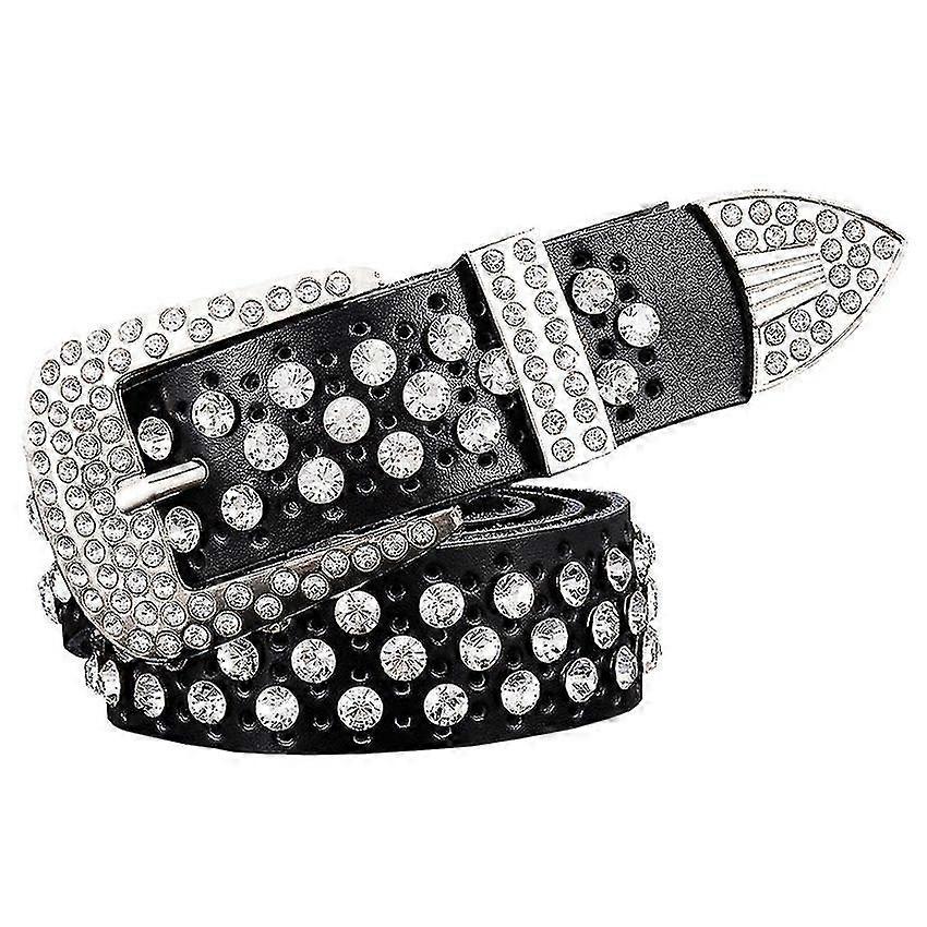 Fashion Rhinestone Genuine Leather Pin Buckle Belt