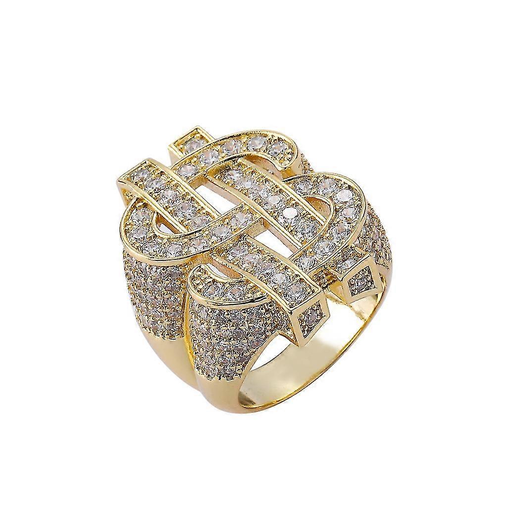 Fashion Rock Us Dollar Sign Rings Iced Out Bling Gold Silver Color Aaa Cubic Zircon Hip Hop Ring Jewelry For Men Size 6-12