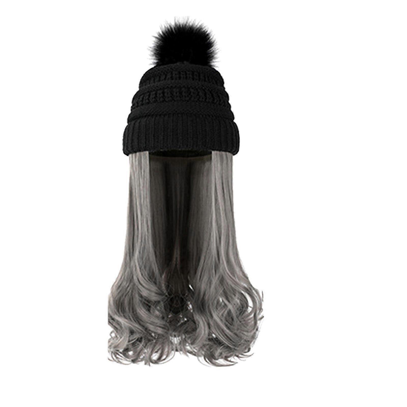 Fashion Long Curly Hair Hat Wig One Knitted Cap