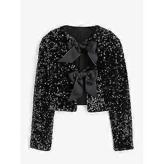 أزياء عطلة التعادل الجبهة سترة الترتر للنساء Y2k لامعة أنيقة معطف اقتصاص الإناث أنيقة طويلة الأكمام سيدة حزب ملابس خارجية