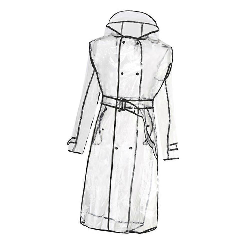 Fashion Clear Raincoat Women Waterproof Hooded Mid-Long Lightweight Rainwear Black Slicker with Belt for Outdoor Activities Size Xl 1Pack