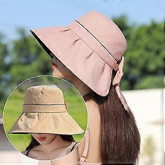 Womens Fashion Black UPF 50+ Adjustable Fisherman Sun Hat With Drawstring