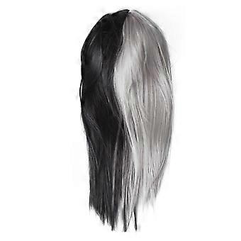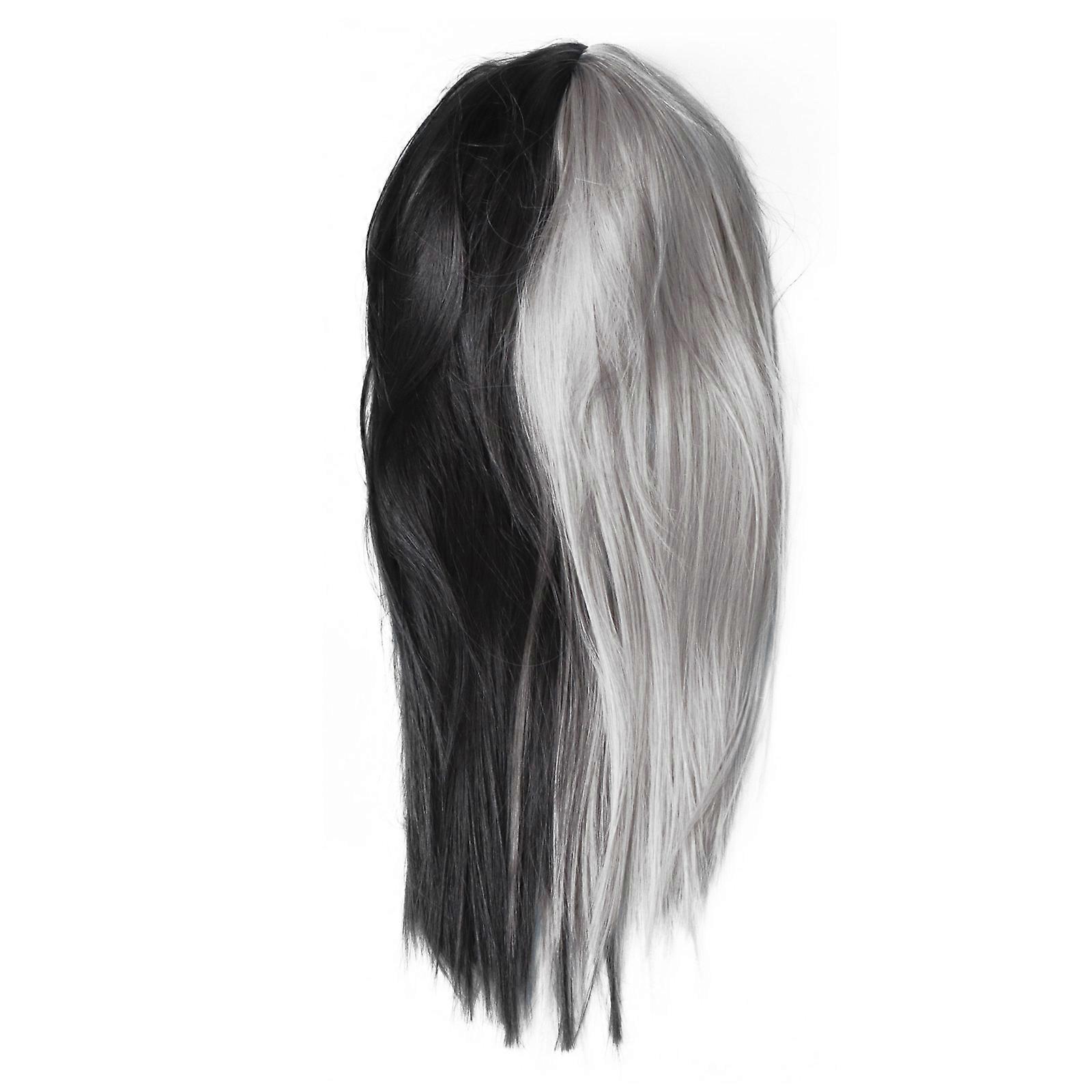 Women's Fashion Long Straight Synthetic Wig – Half Black Half Grey Gradient Design for Cosplay, Halloween & Parties – Durable Handmade Smooth Hair