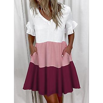 Women's Fashion Short Dress Loose Print Ruffles With Pockets S-5xl