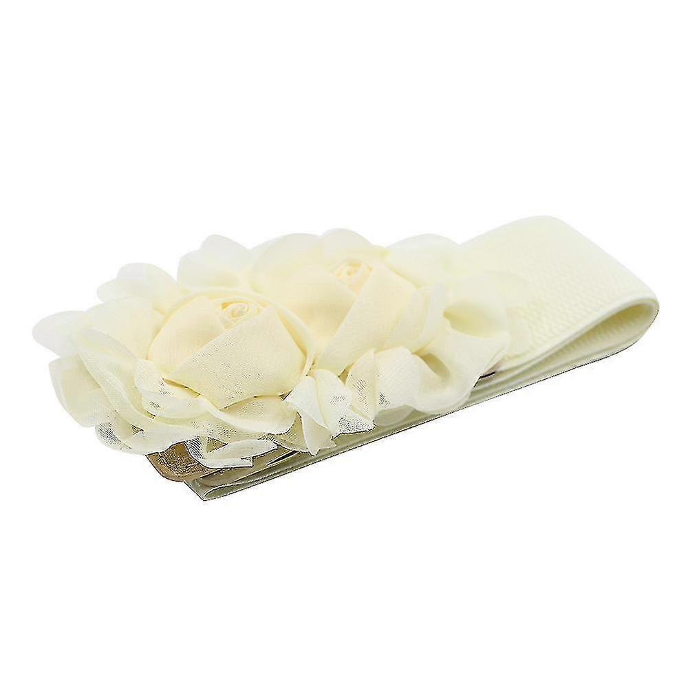 Women's Fashion Double Rose Flowers Elastic Stretch Waist Belt Wide Stretch Waistband