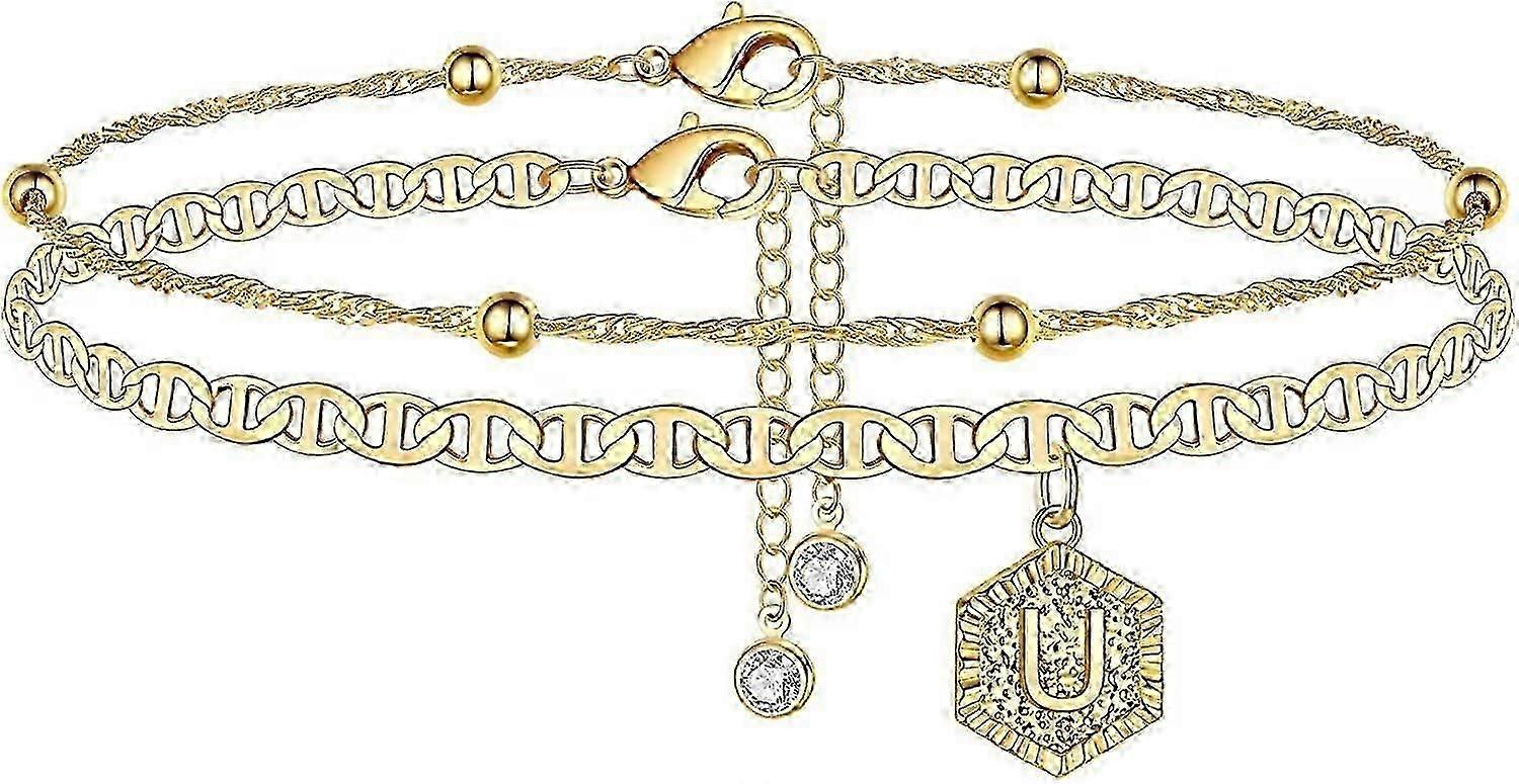 2pcs INITIAL ANKLET: U Ankle bracelets for women with initial charm suit for your name, initial anklet is a fun piece to accessorize your summer outfits!SIZE: Initial anklet is with an adjustable chain for length 8.5--10.5 inches. You can use lobster clasp easy to adjust ankle bracelets length by yourself.Materials: Letter anklet made of premium copper, without nickle and lead, will never fade, rust, stain, corrode, or turn skin green, healthy for skin and nature.PERFECT GIFTS: This special initial anklet can be sent to your friend relatives in festival, valentine's day, wedding, engagement, Christmas class, dating, home, office and daily life.AFTER SERVIRE: Free exchange or full money-back within 90 days if you are not satisfied with initial anklet for women you purchased.