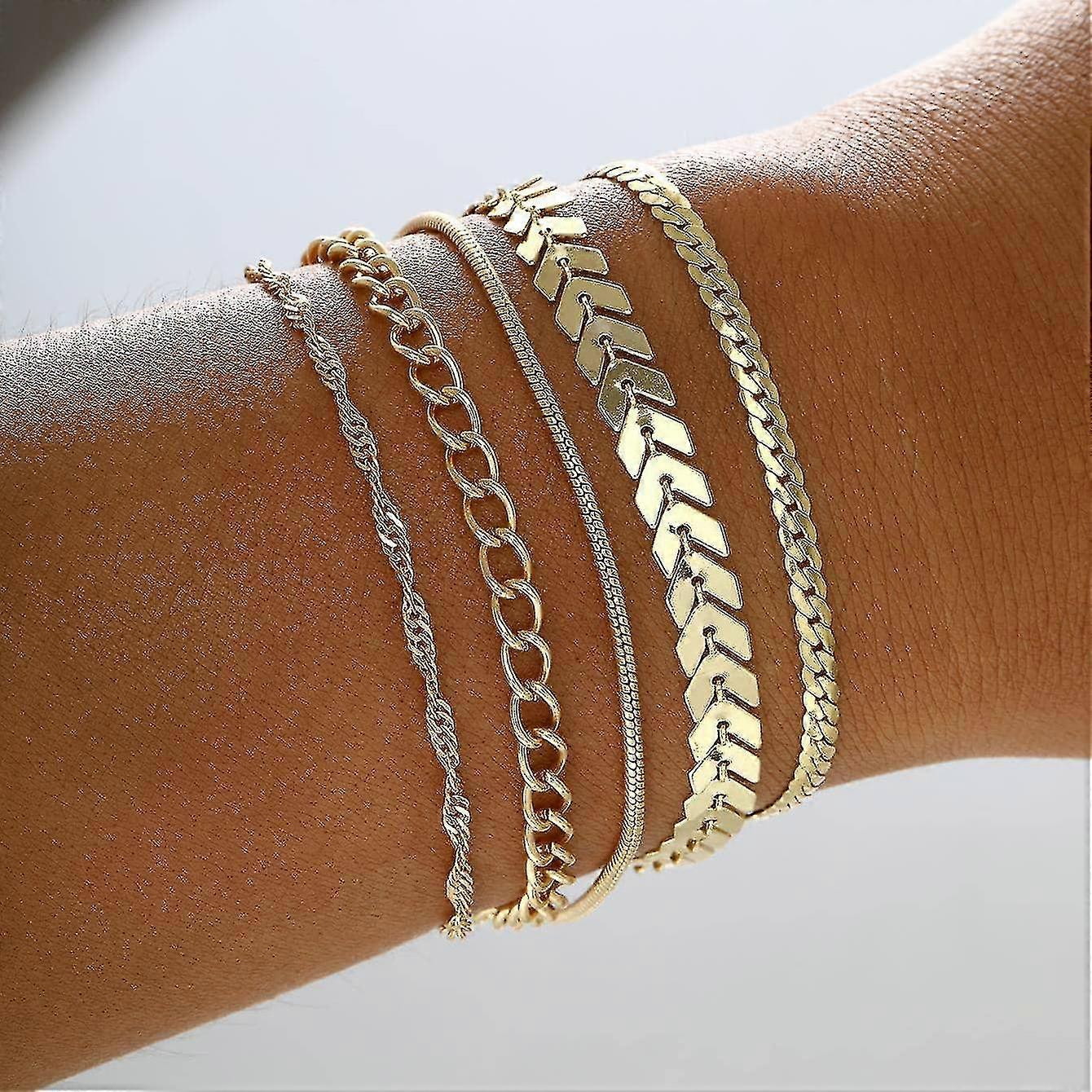 Gold Bracelets For Women Waterproof, 14k Real Gold Plated Jewelry Sets For Women, Dainty Stackable Cuban Bracelets Tw