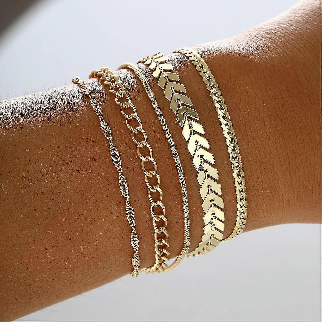 Gold Bracelets For Women Waterproof, 14k Real Gold Plated Jewelry Sets For Women, Dainty Stackable Cuban Bracelets-YKY416