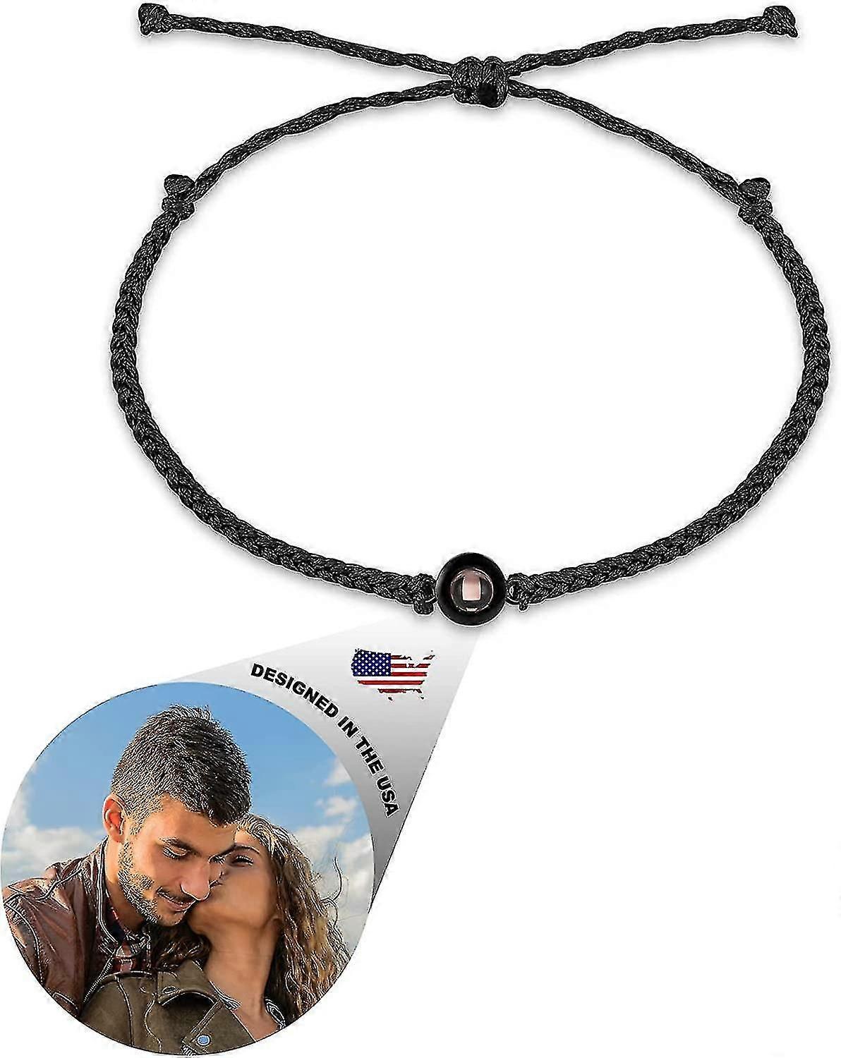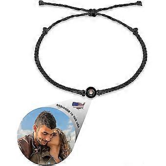 Custom Bracelets With Photo Projection, I Love You Bracelets 100 Languages, Personalized Circle Photo Bracelet With Handmade Braided Rope For Women Me