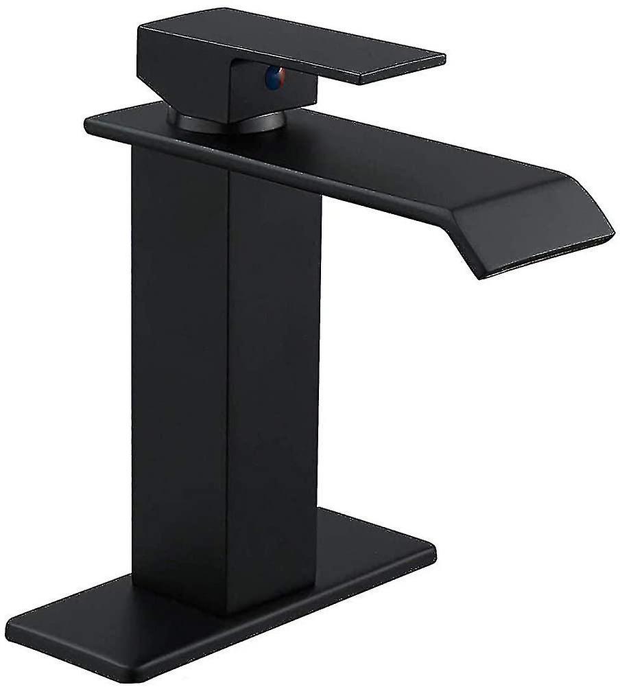 Black Bathroom Faucet Single Hole Waterfall Matte Finish Modern 1 Handle