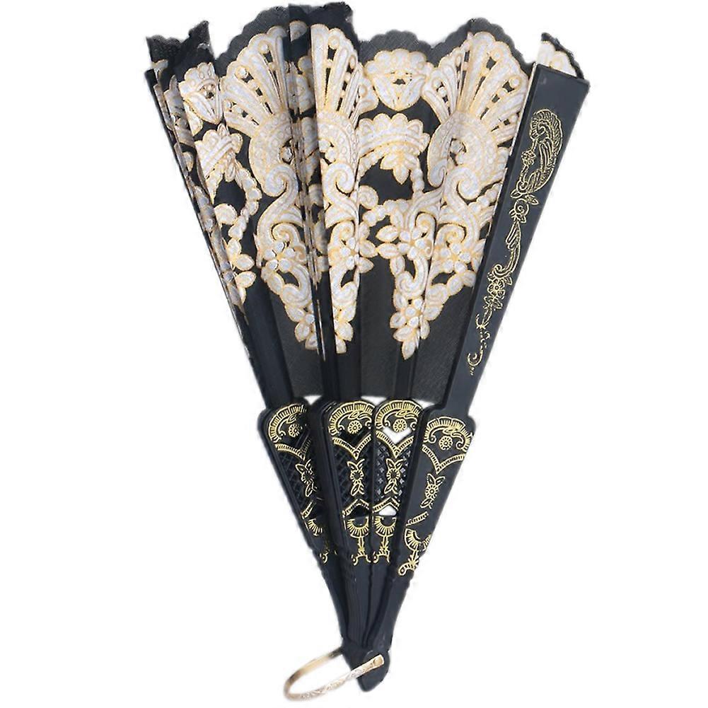 Black Spanish Style Dance Party Wedding Lace Silk Folding Hand Held Flower Fan
