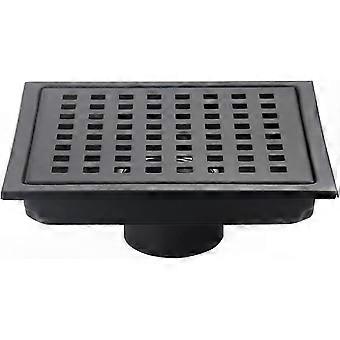Black Matte 6" Square Shower Drain with Removable Grille Cover, Premium SUS304 Stainless Steel Construction