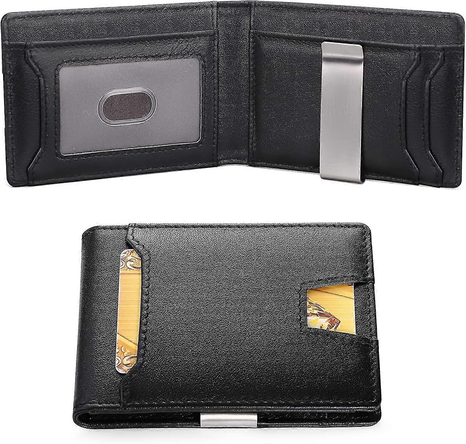 Black - Men's Leather Wallet - Armored Security Credit Card Holder - Slim Coin Purse With Money Clip - (1 Piece)