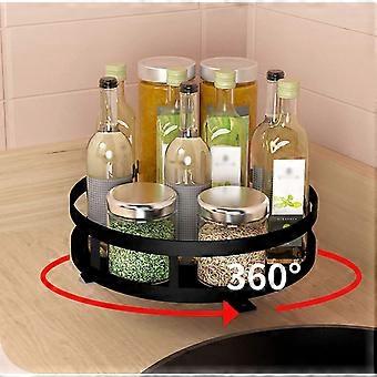 Black Kitchen Cabinet Turntable Spice Rack Metal Rotating Tray 360 Degree Rotating Round Spice Hub