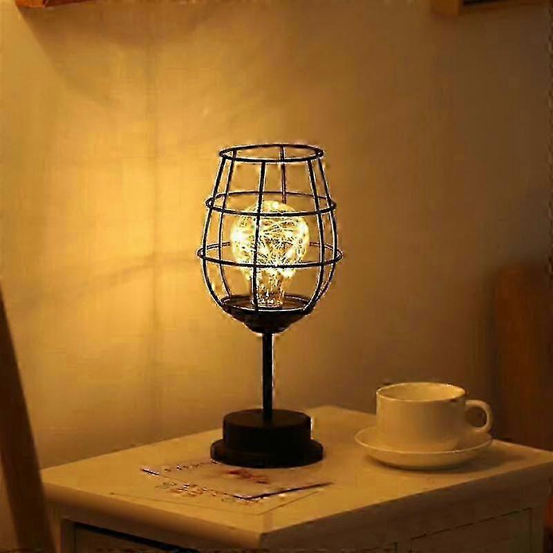 Black Metal Wire Table Lamp, Modern Iron Basket Cage Style Night Light, Retro Bedside Lamp Side Light Battery Operated