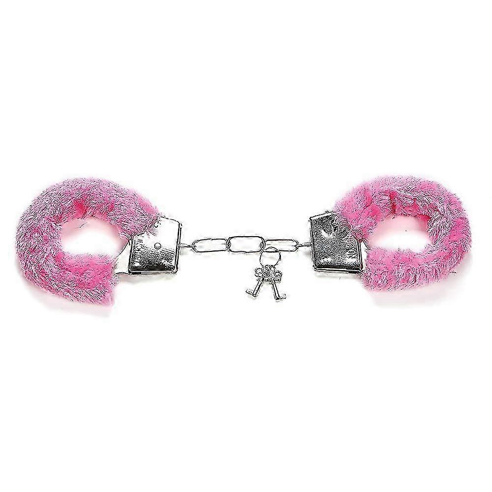 Furry Handcuffs Pink Faux Fur Material Adjustable Metal Locking For Couples