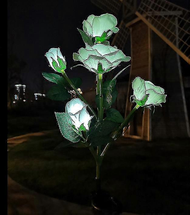 Outdoor Solar Flower Lights 2 Pack 5 Head Artificial Rose Led Lamp Garden Dcor