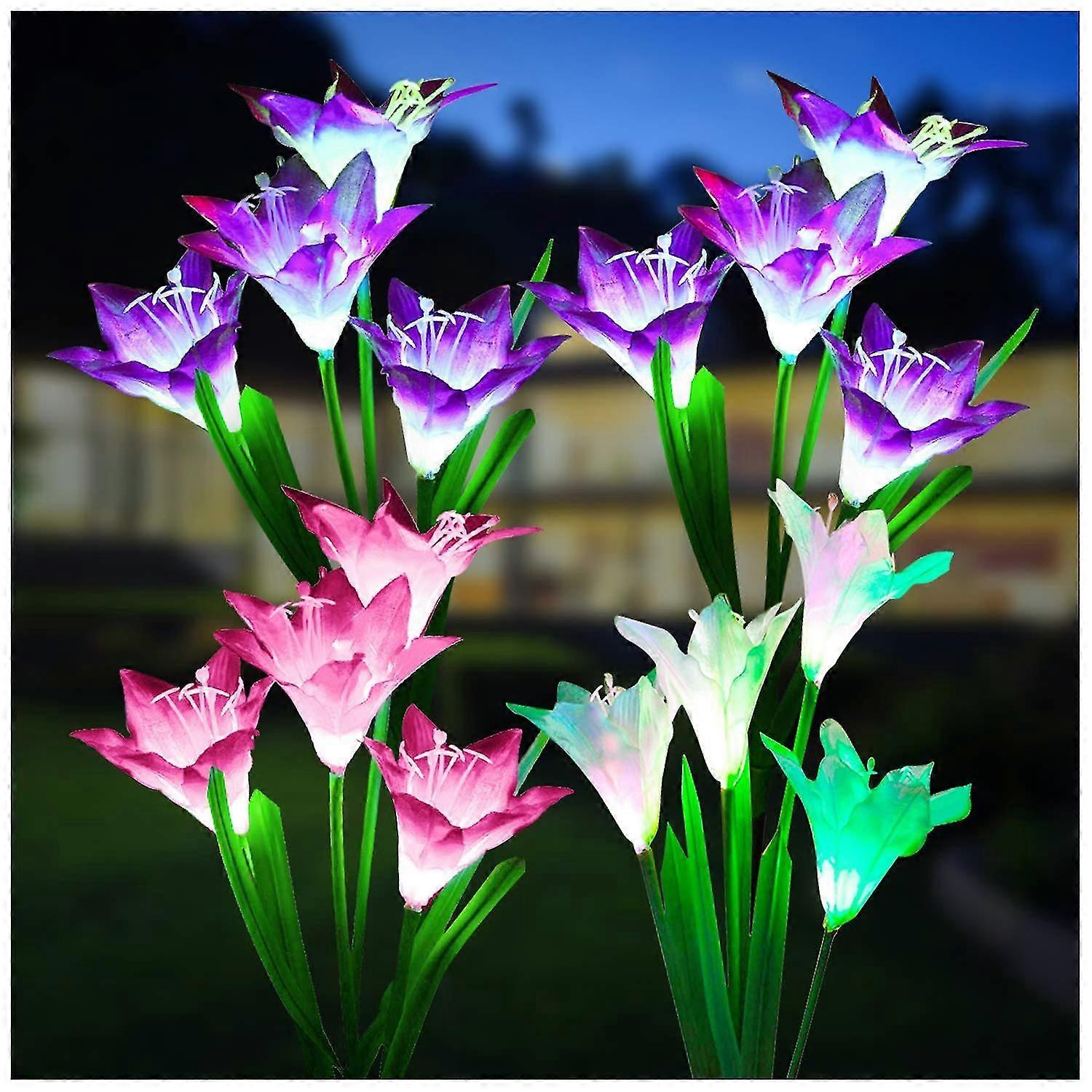 Outdoor Solar Lights, 4 Pack Solar Garden Lights With Bigger Lily Flowers, Waterproof Outdoor Lights For Garden