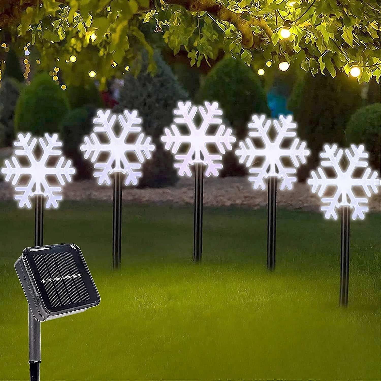 Christmas Snowflake Stake Lights Outdoor, 5 Pack Garden LED Landscape Lights, Solar-Powered Waterpro