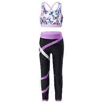 أطفال الباليه الجمباز ملابس مطبوعة المحاصيل الأعلى مع طماق أطفال بنات قطعتين رياضية رياضية بدون أكمام مجموعات رياضية