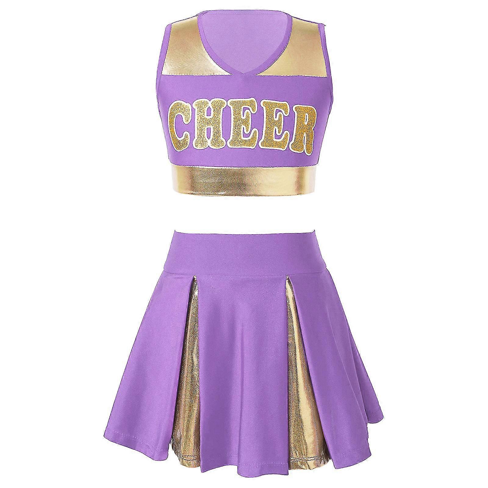 Kids Girls Cheerleading Dance Costume Sleeveless V Neckline Letters Printed Crop Top With Pleated Skirt And 2pcs Flower Balls