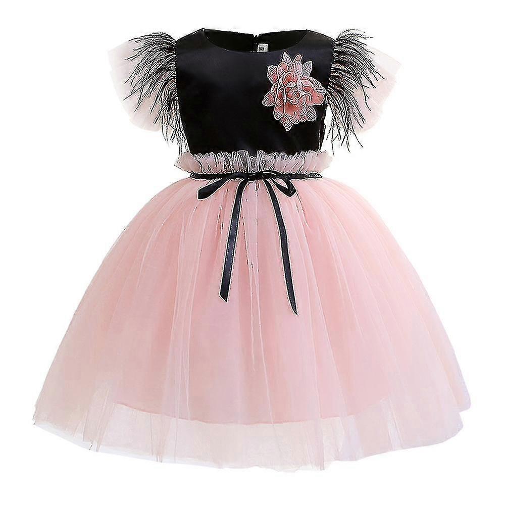 Kids Girls Round Neck Flower Decor Short Sleeve Princess Tulle A-line Dress